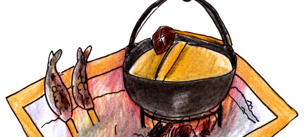 はじめに、みなさん子供時代の囲炉裏事情について話が交わされました。さすがに囲炉裏はなかったけど、火鉢があったという方がほとんどでした。暖を取ったりお餅を焼いたり、家族みんなで囲む火鉢の情景が浮かびました。そして、囲炉裏は家庭の中で大事にされていた場であり、火の存在に敬意をはらうもの、神が宿るもの、そんな事をおはなしから受け取りました。囲炉裏はほとんど見る事はなくなってしまった現代ですが、どんな時も暮らしの中にあった囲炉裏、その大事な精神性も含んだ記憶が、おはなしの中にこれからもあり続けるのだと思いました。子供の頃、長い休みになると泊まりに行った、友達のおばあちゃんの家があって、掘りごたつと五右衛門風呂でした。服やら髪やらが煙の匂いに。今や懐かしい匂いとなりました。